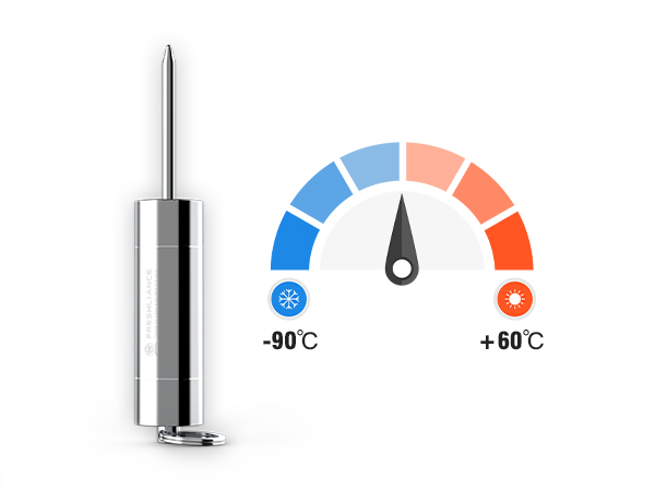 | Dải đo nhiệt độ | Tùy phiên bản đầu dò: • -90°C đến +60°C • -40°C đến +125°C hoặc -50°C đến +150°C |