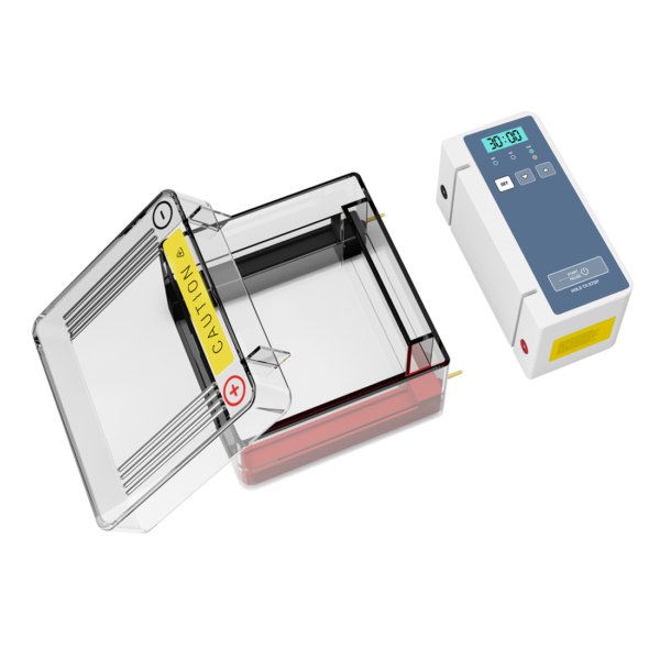 - Thiết kế nhỏ gọn và di động: Bể điện di và nguồn điện có thể tách rời, thuận tiện cho việc sử dụng và vệ sinh.